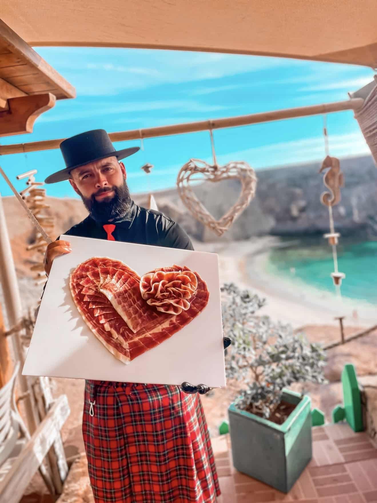 Gran Canaria, donde las dunas se funden con el Atlántico y el jamón se corta con ritmo isleño. Soy Julio García, el Galician Ham Carver, enfundado en kilt escocés, sombrero cordobés y cuchillo listo para transformar tu evento en un espectáculo de sabor y arte.