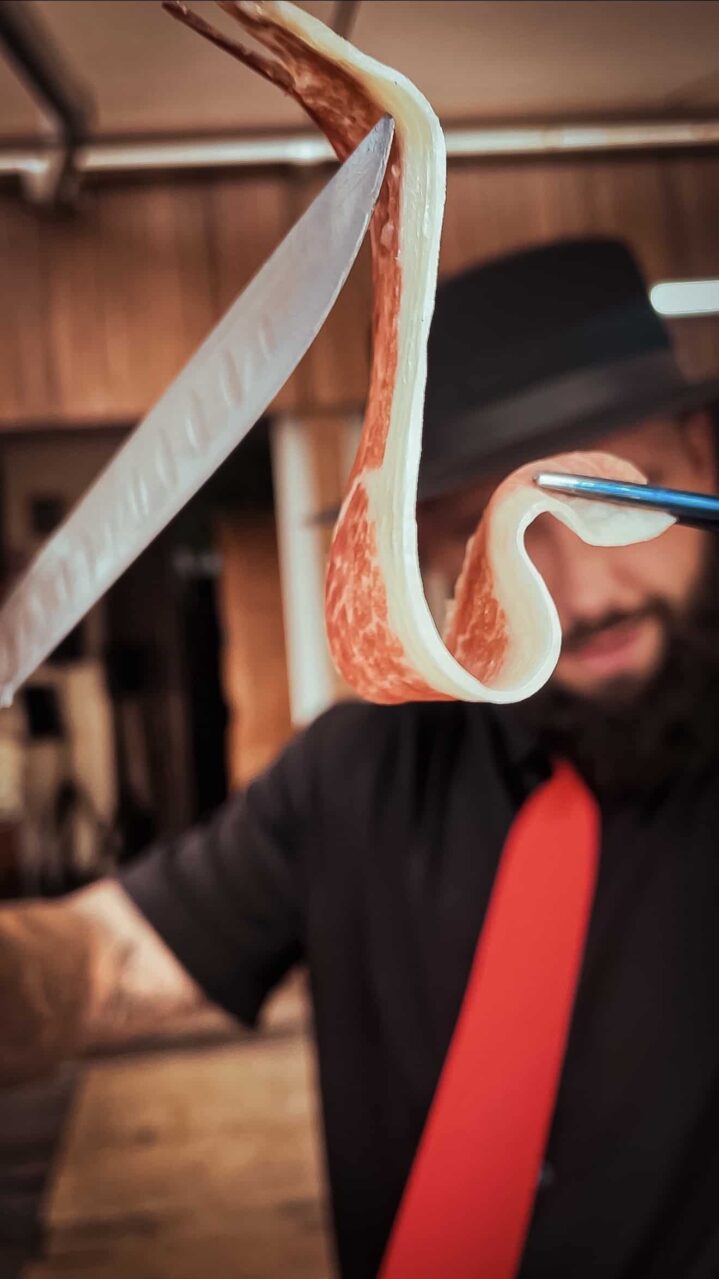 Trabajo con wedding planners, fincas y hoteles de toda la isla para ofrecer una experiencia que mezcla sabor, estilo y recuerdo. Porque un buen jamón se disfruta… pero un corte con alma se queda en la memoria.